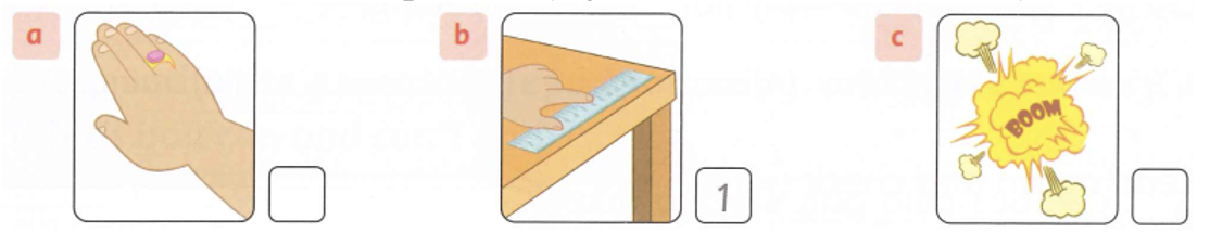 Write. Match the pictures with the sentences. There are two extra sentences. Order the words.
