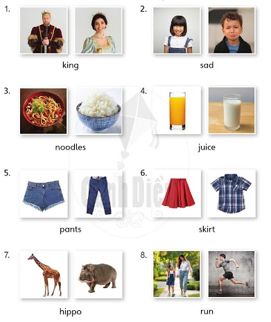 Task 2. Read and look. Circle the correct picture. (Đọc và nhìn. Khoanh tròn vòa bức tranh đúng)
