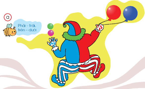 – Quả cầu ở bên trái chú hề, quả bóng bay ở bên phải chú hề