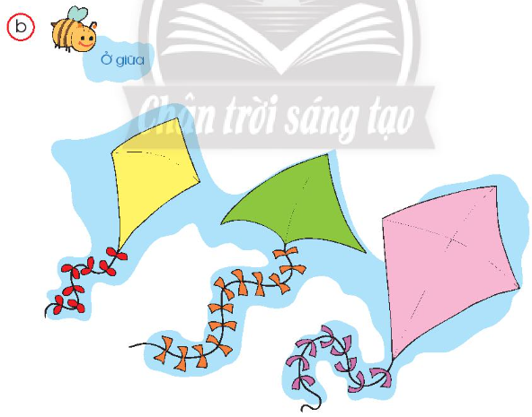Quan sát tranh và dựa vào gợi ý của bạn ong để nói về vị trí của mỗi đồ vật.