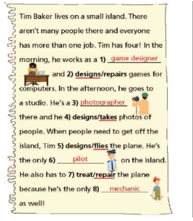 (Nhìn vào bức tranh và viết tên công việc và chọn câu trả lời thích hợp.)
