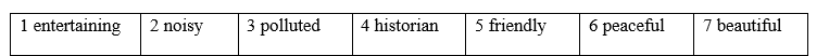 Giải thích: sau ‘a’ và trước ‘city’ cần một tính từ bổ nghĩa cho ‘city’ -> peaceful