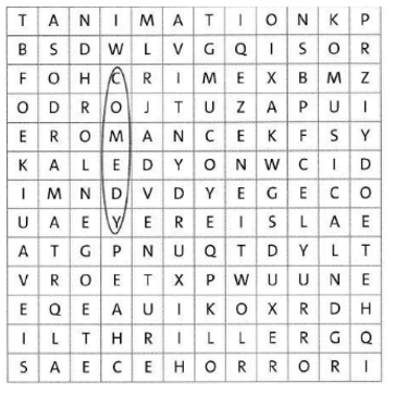 (Tìm thêm tám từ về thể loại phim và sách trong tìm kiếm từ.)