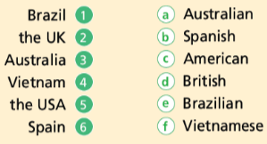(Nối tên các quốc gia và các quốc tịch phù hợp.)
