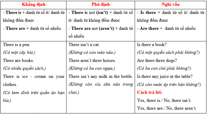 – “Yes” dùng cho câu khẳng định => Yes, there is