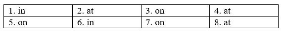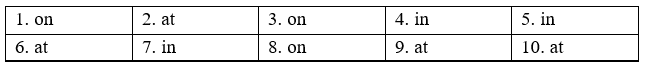 (Điền vào mỗi chỗ trống với at, in hoặc on.)
