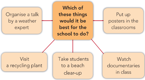 4. Imagine that a school wants its students to understand more about environmental problems. Look at the diagram. It shows some things the teachers are thinking about doing. In pairs, follow these steps.