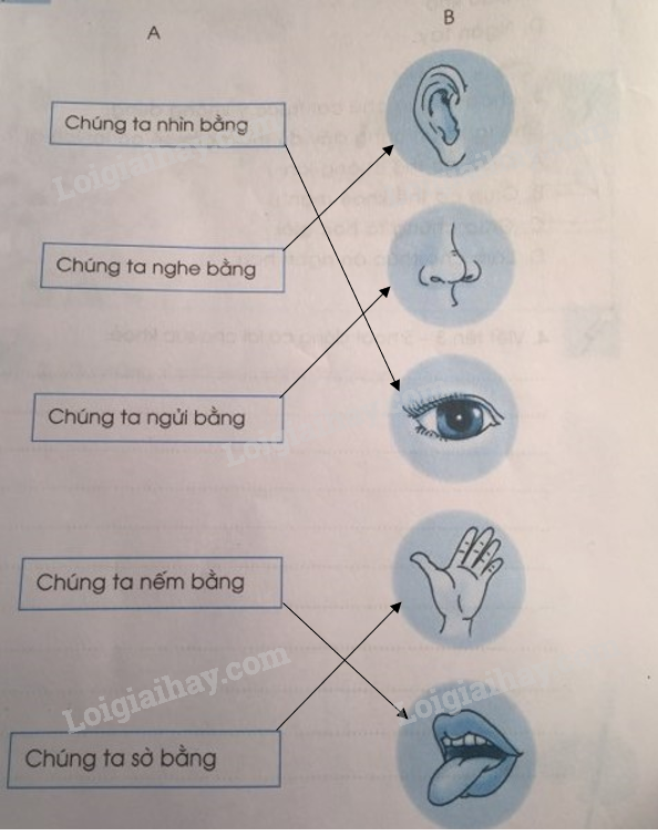Giải câu 1,2,3,4 bài 10: Ôn tập: Con người và sức khỏe trang 13,14 VBT Tự nhiên và Xã hội 1. Câu 1: Nối ô chữ ở cột A với hình vẽ ở cột B cho phù hợp.