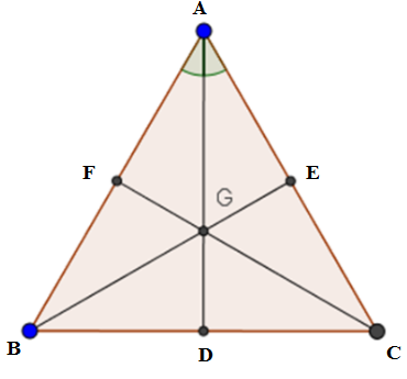 Ta có $AD;BE$  và $CF$  là ba đường trung tuyến của tam giác $ABC$  và chúng cắt nhau tại $G$  nên $G$  là trọng tâm của tam giác \(ABC\) .