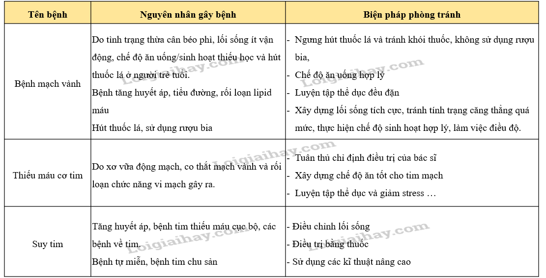 Dựa vào tài liệu, internet, hỏi bác sĩ, cán bộ y tế,… về một số bệnh phổ biến ở hệ tuần hoàn, nguyên nhân gây bệnh đó và cách phòng chống. Sau đó kẻ và hoàn thành bảng vào vở theo mẫu dưới đây: