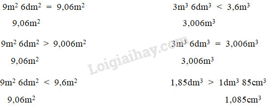Đổi số đo ở hai vế về cùng một đơn vị đo rồi so sánh kết quả với nhau.