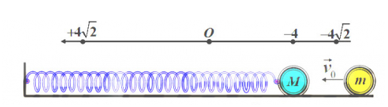 Một quả cầu khối lượng $M =2 (kg)$, gắn trên một lò xo nhẹ thẳng đứng có độ cứng $800 (N/m)$, đầu dưới của lò xo gắn cố định. Một vật nhỏ có khối lượng $m=0,4 kg$ rơi tự do từ độ cao $h=1,8m$ xuống va chạm đàn hồi với $M$. Lấy gia tốc trọng trường g =10 m/s2. Sau va chạm, vật $M$ dao động điều hòa theo phương thẳng đứng trùng với trục của lò xo. Biên độ dao động là: