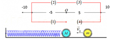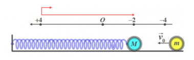 Tốc độ của M ngay sau va chạm: \(V = \frac{{2m{v_0}}}{{m + M}} = \frac{{2.0,1.3}}{{0,1 + 0,2}} = 2(m/s)\)