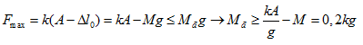 \(A = \frac{V}{\omega } = \frac{V}{{\sqrt {\frac{k}{M}} }} = 0,1m\)