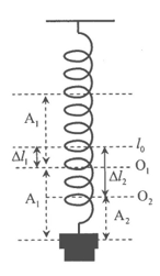 \(\Delta {l_1} = \dfrac{{{m_A}g}}{k} = 10cm\)
