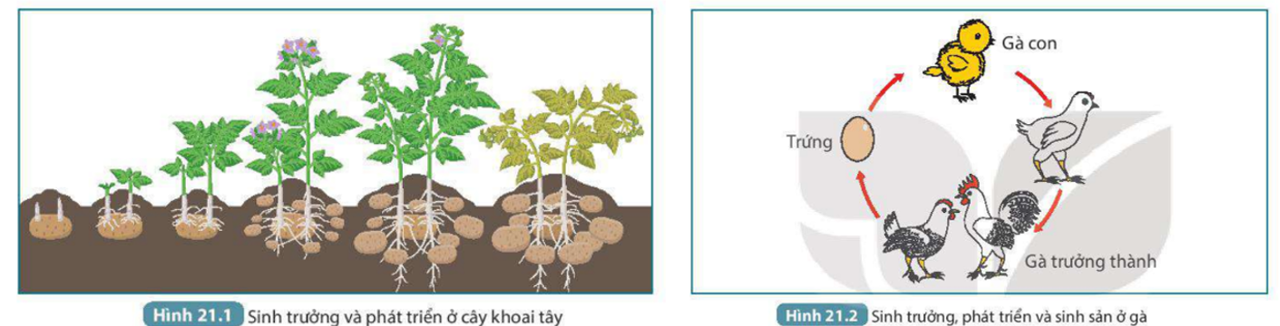 Quan sát hình dưới đây, nêu vai trò của trao đổi chất và và chuyển hóa năng lượng đối với sinh trưởng và phát triển ở cây khoai tây và con gà.