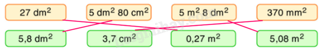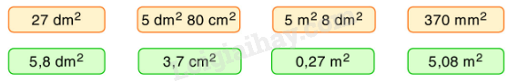 – Dựa vào mối liên hệ giữa đơn vị dm2 và m2 : 1 m2 = 100 dm2 ; 1 dm2 = $\frac{1}{{100}}$ m2.