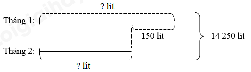 Trong cả tháng 1 và tháng 2, nhà Tùng dùng hết 14 250 $l$ nước. Số lít nước tháng 2 nhà Tùng dùng ít hơn tháng 1 là 150 $l$. Hỏi trong hai tháng đó, mỗi tháng nhà Tùng dùng hết bao nhiêu lít nước?