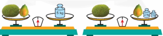 – Tổng cân nặng của quả mít và quả đu đủ là 5 kg