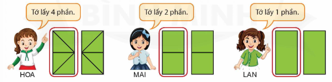 Vậy phân số chỉ số phần bánh mỗi bạn lấy được bằng nhau.
