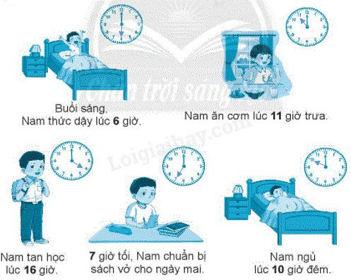Em vẽ thêm kim giờ chỉ thời gian thích hợp cho mỗi hoạt động.