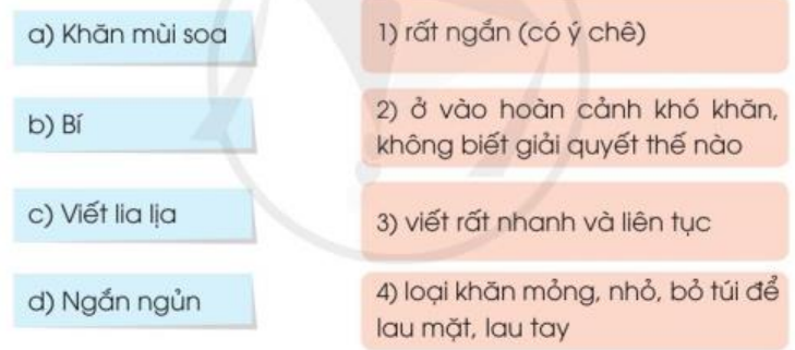 Ghép: a – 4, b – 2, c – 3, d – 1.