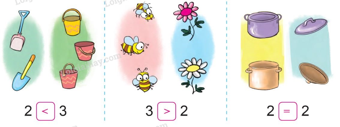 Vật nào ghi số lớn hơn trong mỗi hình vẽ sau?