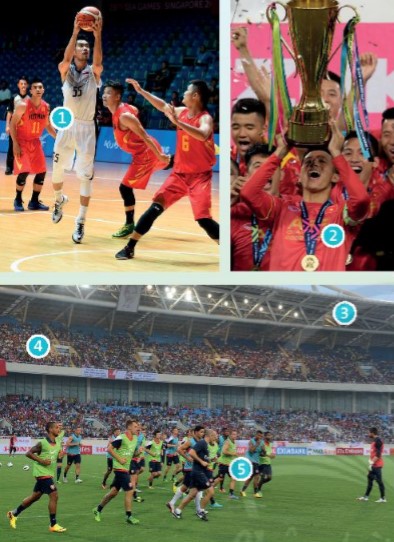 The national team plays at the My Dinh stadium in Hà Nội. There are athletics events here as well as football matches. You can even go to music concerts! Basketball is quite a new sport in Viet Nam. In 2019, the national championship was in Ho Chi Minh City. The games were on the internet so everyone could enjoy them. The competitions are fast and fun, and there is music and dancing before and after the game.