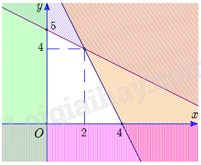 Trong các điểm ở trên, chỉ có điểm \(\left( {0; – 4} \right)\) thuộc miền bị gạch chéo. Do đó, điểm \(\left( {0; – 4} \right)\) không nằm trong miền nghiệm của bất phương trình.