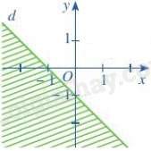 + Nếu \(a{x_0} + b{y_0} + c < 0\) thì miền nghiệm của bất phương trình đã cho là nửa mặt phẳng (không tính bờ d) không chứa điểm \(\left( {{x_0};{y_0}} \right)\)