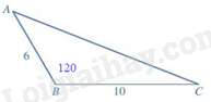 Theo định lí cosin ta có: \(A{C^2} = A{B^2} + B{C^2} – 2.AB.BC.\cos B = {6^2} + {10^2} – 2.6.10\cos {120^0} = 196\)\( \Rightarrow AC = 14\)