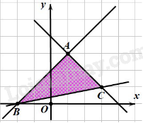 Miền nghiệm của hệ bất phương trình là miền tam giác ABC (kể cả các cạnh) với tọa độ các đỉnh \(A\left( {1;3} \right),B\left( { – 2;0} \right),C\left( {3;1} \right)\).