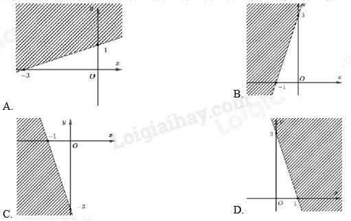 Trong các điểm ở trên, chỉ có điểm \(\left( {0; – 4} \right)\) thuộc miền bị gạch chéo. Do đó, điểm \(\left( {0; – 4} \right)\) không nằm trong miền nghiệm của bất phương trình.