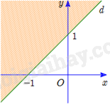 Ta thấy điểm O (0; 0) không thuộc đường thẳng d, \( – 0 + 0 – 1 \le 0\) và O thuộc miền nghiệm của bất phương trình nên bất phương trình cần tìm là \( – x + y \le 1\).