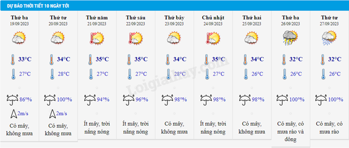 Cho bảng dự báo thời tiết 10 ngày tới của Thủ đô Hà Nội.