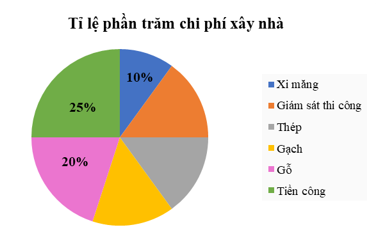 Câu 6: Chi phí xây dựng nhà được biểu diễn qua biểu đồ hình quạt tròn sau: