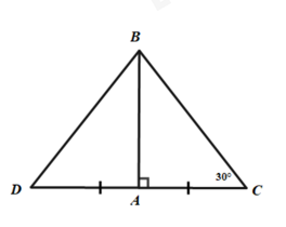 Câu 10: Tam giác \(ABC\) vuông tại \(A\) có \(\angle C = 30^\circ \). Trên tia đối của tia \(AC\) lấy điểm \(D\) sao cho \(AD = AC\). Tính số đo \(\angle BDA\)?