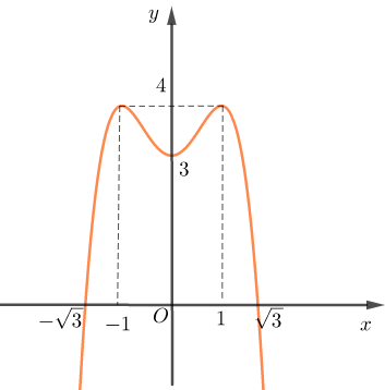 Suy ra có 3 giá trị nguyên của \(m\) thỏa mãn phương trình \(f\left( x \right) = m\) có 4 nghiệm phân biệt.