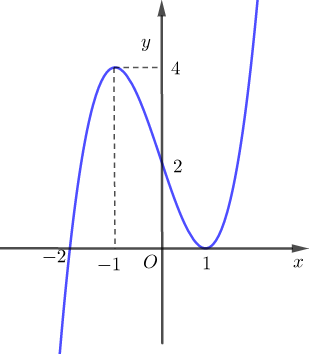 Phương trình \(f’\left( x \right) = 0\) có 1 nghiệm đơn duy nhất nên hàm số đã cho có 1 điểm cực trị.