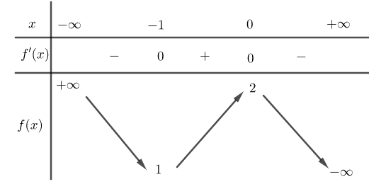 Từ BBT đã cho ta thấy hàm số đã cho đồng biến trên khoảng \(\left( { – 1;0} \right)\) và nghịch biến trên các khoảng \(\left( { – \infty ; – 1} \right)\) và \(\left( {0; + \infty } \right)\).