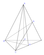 Câu 23(TH): Cho tứ diện đều \(ABCD\). Gọi \(M,\,\,N,\,\,P\) lần lượt là trung điểm của các cạnh \(DC,\,\,DA,\,\,DB\) (tham khảo hình bên). Mặt phẳng nào dưới đây là một mặt phẳng đối xứng của tứ diện đã cho?