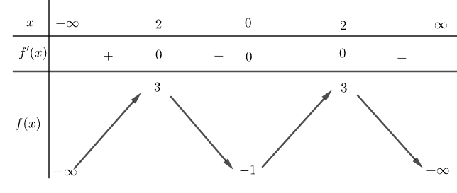 Từ BBT đã cho ta thấy phương trình \(f\left( x \right) = m\) có 4 nghiệm phân biệt khi và chỉ khi \( – 1 < m < 3\)