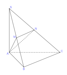 Câu 19(VD): Cho khối chóp \(S.ABC\) có cạnh ba cạnh \(AS,\,\,AB,\,\,AC\) đôi một vuông góc với nhau và \(AS = a,\,\,AB = 2a,\,\,AC = 3a\). Gọi \(M,\,\,N\) lần lượt là trung điểm của các cạnh \(SB\) và \(SC\) (tham khảo hình bên). Tính thể tích \(V\) của khối chóp \(S.AMN\)