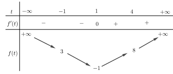 \(\left\{ \begin{array}{l}\Delta > 0\\{t_1} + {t_2} > 2\\\left( {{t_1} – 1} \right)\left( {{t_2} – 1} \right) > 0\end{array} \right.\) \( \Leftrightarrow \left\{ \begin{array}{l}{m^2} – 4\left( {2m + 3} \right) > 0\\{t_1} + {t_2} > 2\\{t_1}{t_2} – \left( {{t_1} + {t_2}} \right) + 1 > 0\end{array} \right.\) \( \Leftrightarrow \left\{ \begin{array}{l}{m^2} – 8m – 12 > 0\\m > 2\\2m + 3 – m + 1 > 0\end{array} \right.\) \( \Leftrightarrow \left\{ \begin{array}{l}\left[ \begin{array}{l}m > 4 + 2\sqrt 7 \\m < 4 – 2\sqrt 7 \end{array} \right.\\m > 2\\m > – 4\end{array} \right.\) \( \Rightarrow m > 4 + 2\sqrt 7 \)
