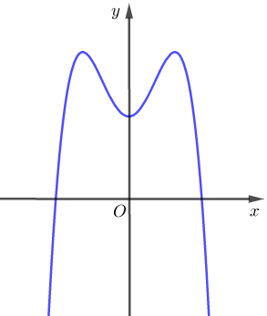 Câu 33(NB): Cho hàm số \(y = a{x^4} + b{x^2} + c\) (với \(a,\,b,\,c \in \mathbb{R}\)) có đồ thị như hình bên. Số điểm cực đại của đồ thị hàm số là: