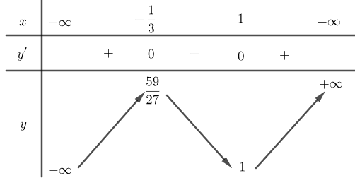 Hàm số đã cho đồng biến trên các khoảng \(\left( { – \infty ; – 1} \right)\) và \(\left( {1; + \infty } \right)\) và nghịch biến trên khoảng \(\left( { – 1;1} \right)\)
