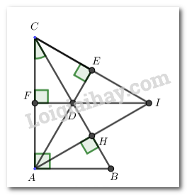 d) Từ \(D\) kẻ DF vuông góc với AC\((\)F thuộc AC\(),\) I là giao điểm của CE và AH. Chứng minh ba điểm \(I, D, F\) thẳng hàng.