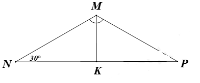 Câu 3: Cho \(\Delta MNP\) có MK là tia phân giác góc M, \(\hat N = \hat P = 30^\circ \). Khi đó số đo của \(\widehat {MKN}\) là: