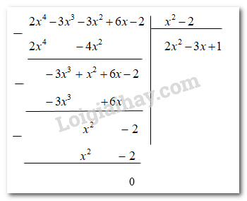 Thương của phép chia là \(2{x^2} – 3x + 1\) dư 0.