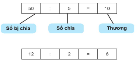 Xác định số bị chia, số chia và thương và nối với số thích hợp trong phép chia.